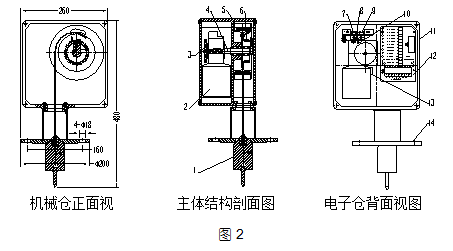 重锤式物位计由按装在控制室的控制显示表和安装在料仓顶部的传感器组成。其中传感器组成见图2。